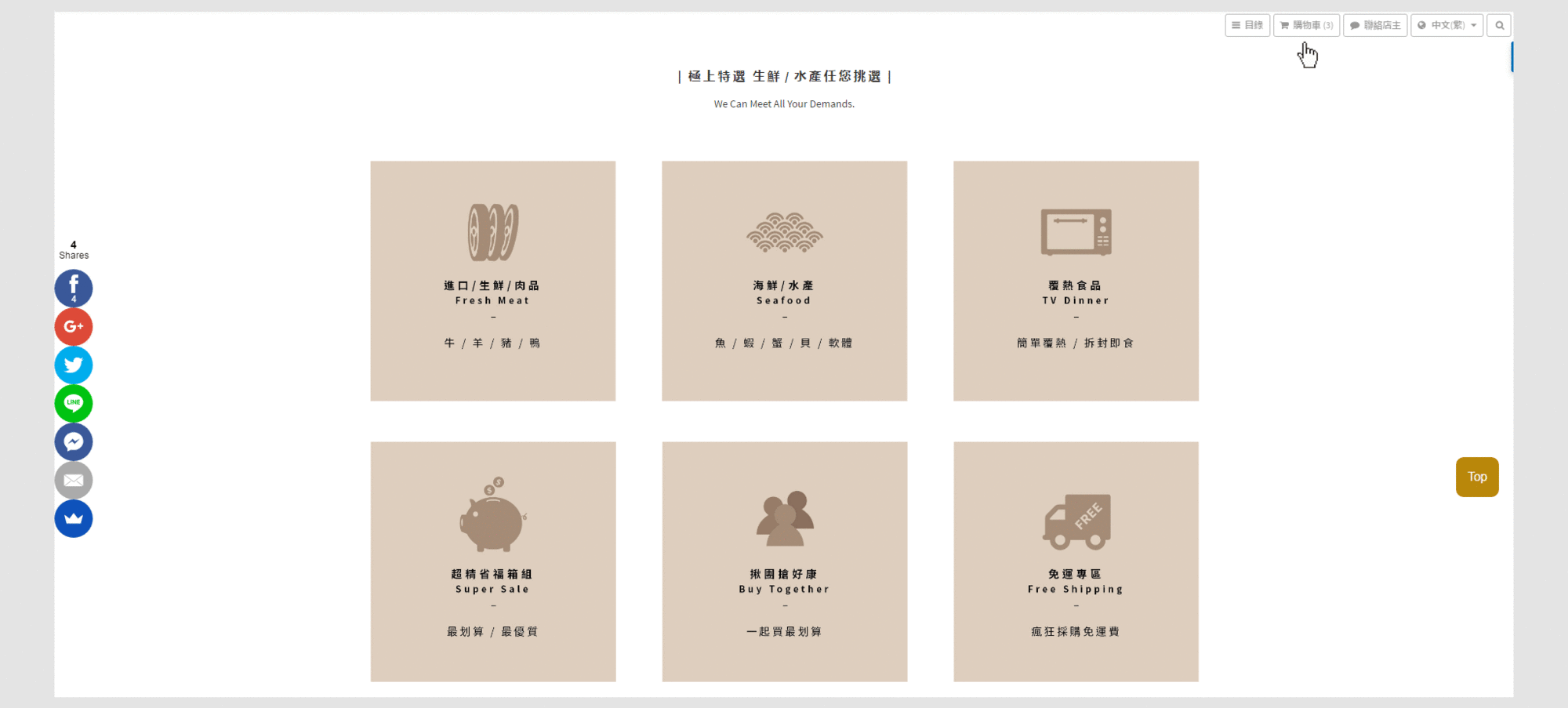 把喜歡的通通加入購物車後,點擊頁面右上角處 " 購物車 " 選項。