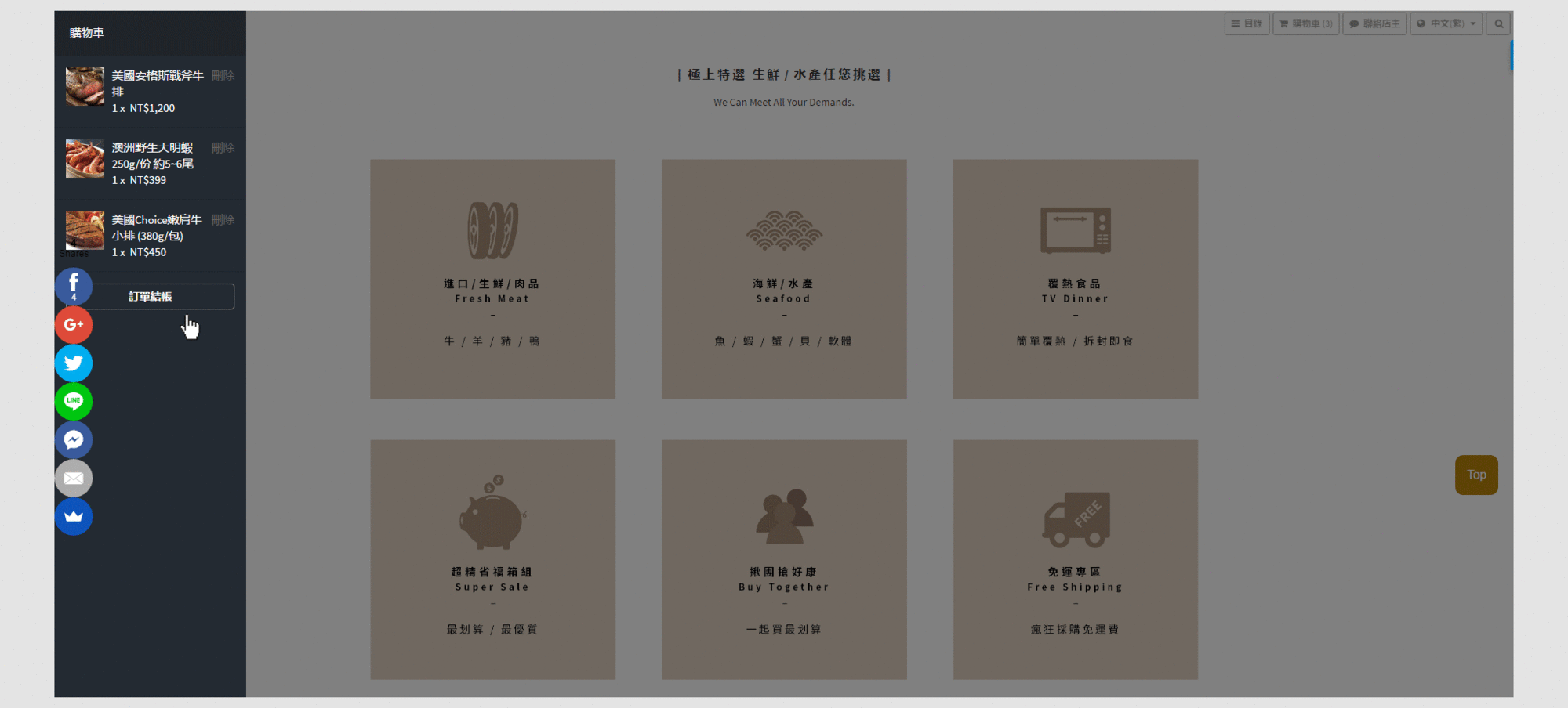 點擊後左方會出現購物車明細,確認後點選下方 " 訂單結帳 "進入結帳頁面。
