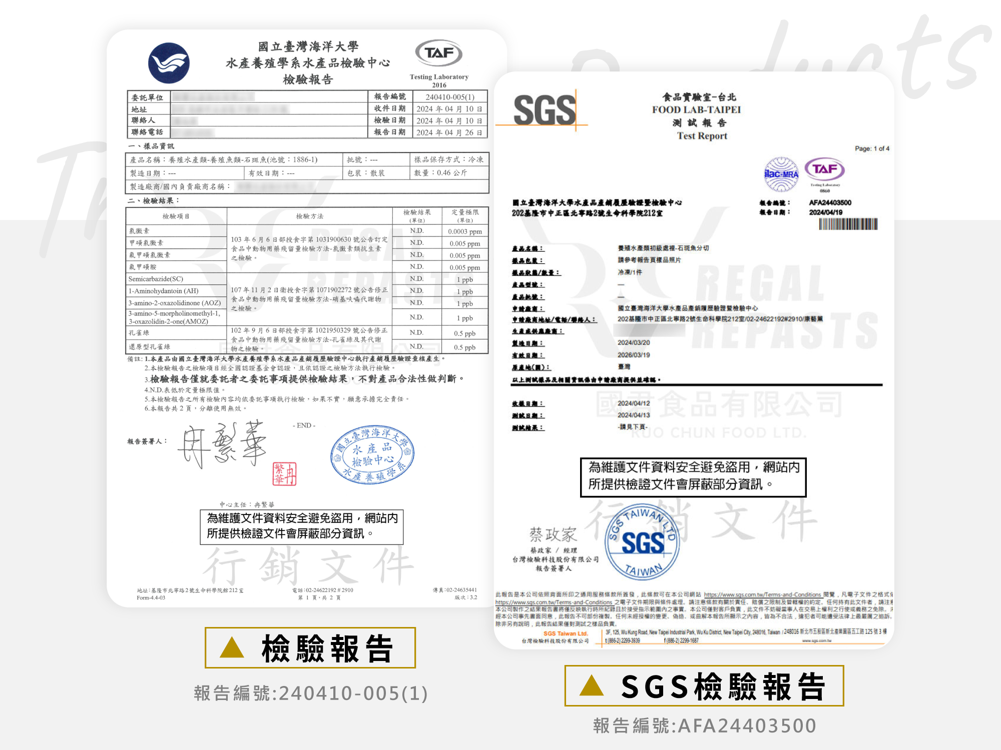 國立臺灣海洋大學 水產養殖學系水產品檢驗中心 檢驗報告