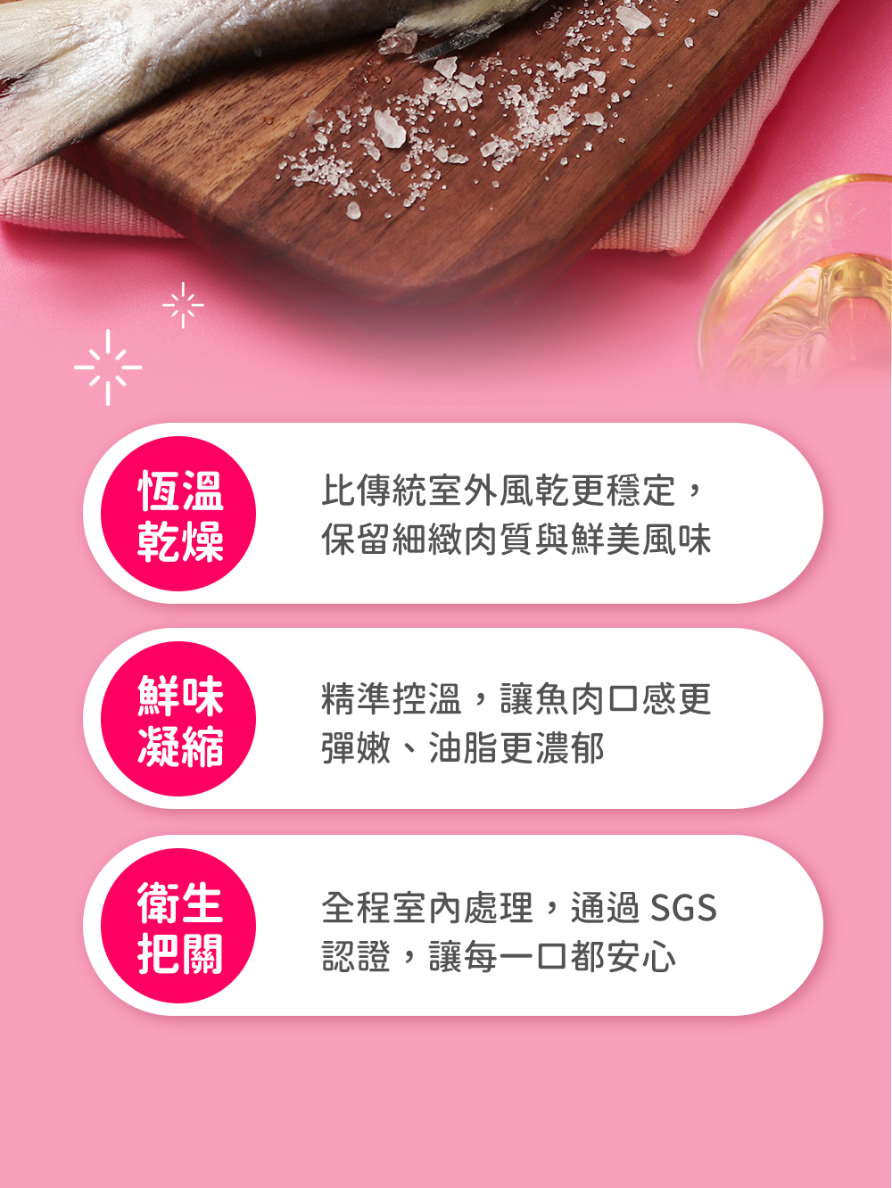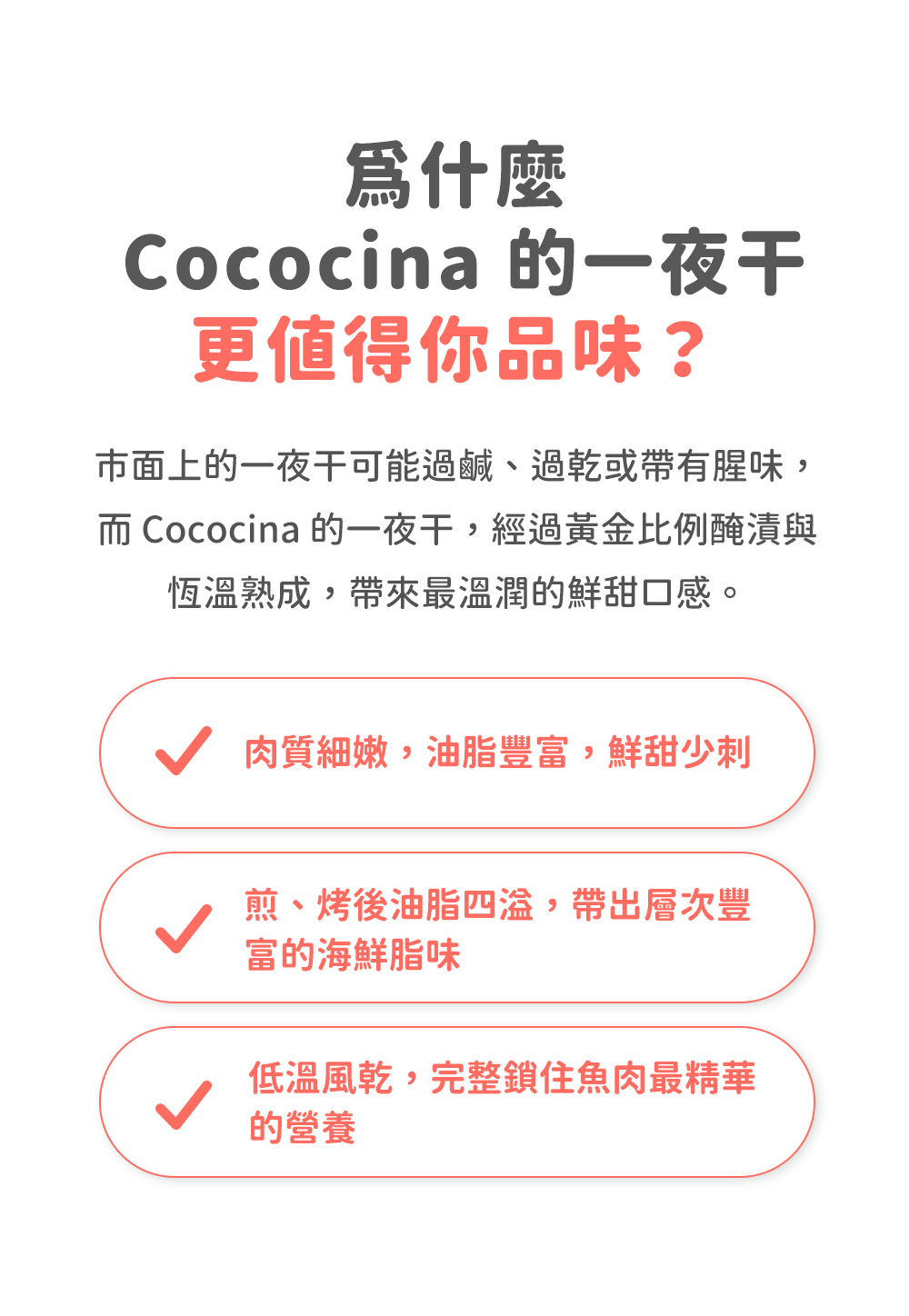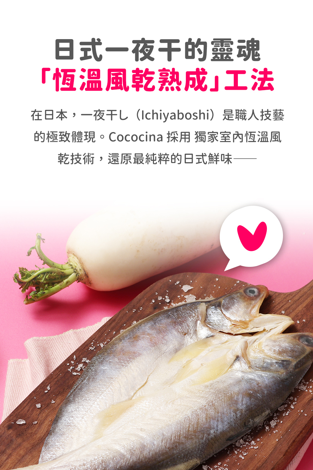 風乾處理後呈現與新鮮魚肉不同的風味層次,肉質更加緊實鮮美,簡單乾煎或火烤,撒上胡椒與檸檬汁立刻成為餐桌上的美味料理!