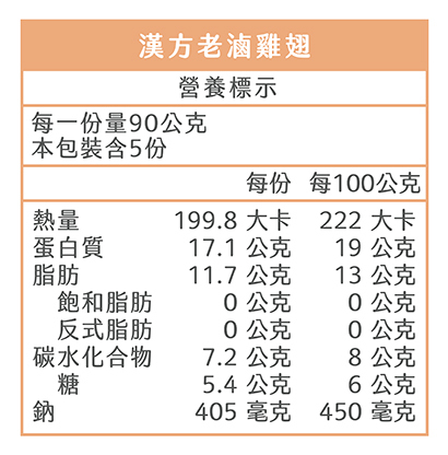 內容物:雞翅、醬油、米酒、糖、辛香料(八角、香葉、花椒、草果)