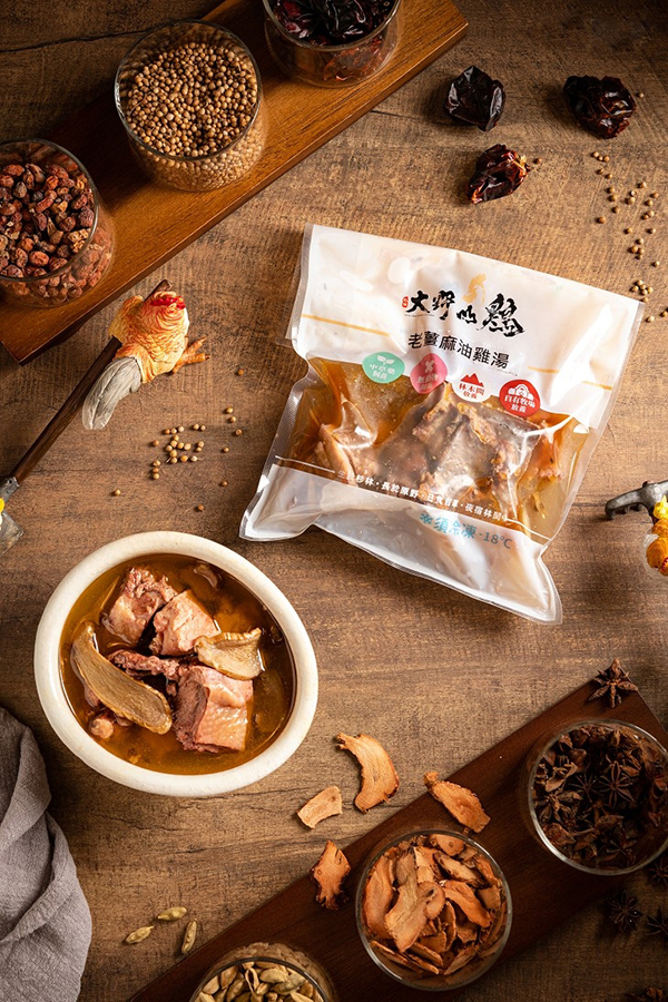 內容物:雞高湯(水、雞骨、豬骨)、去骨雞腿丁、麻油、薑片、鹽、米酒
