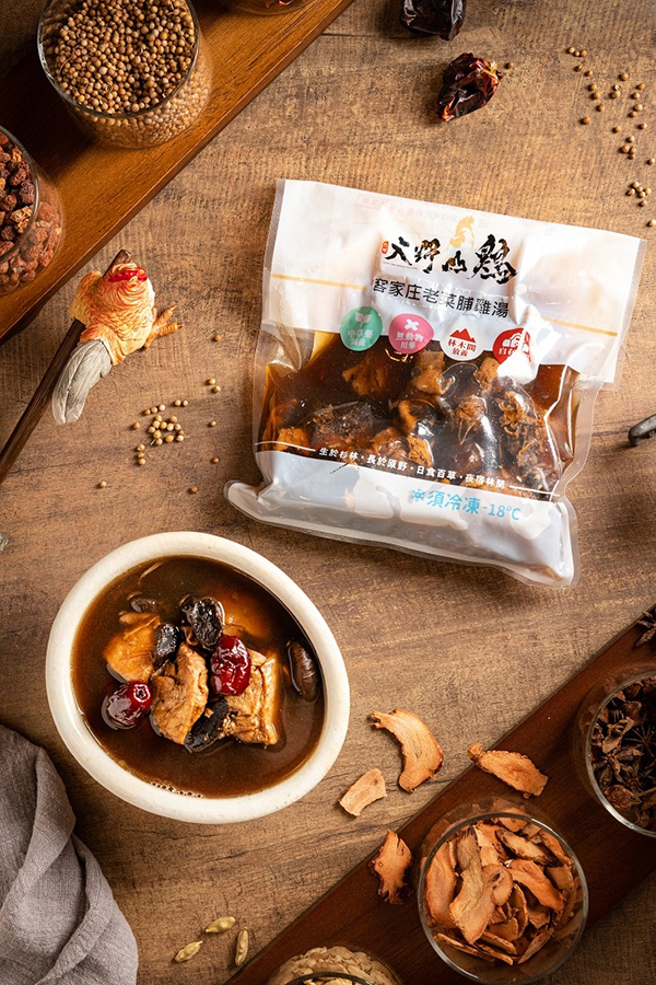 內容物:去骨雞腿丁、雞高湯(雞骨、豬骨)、老菜脯(白蘿蔔、鹽)、薑、紅棗、水