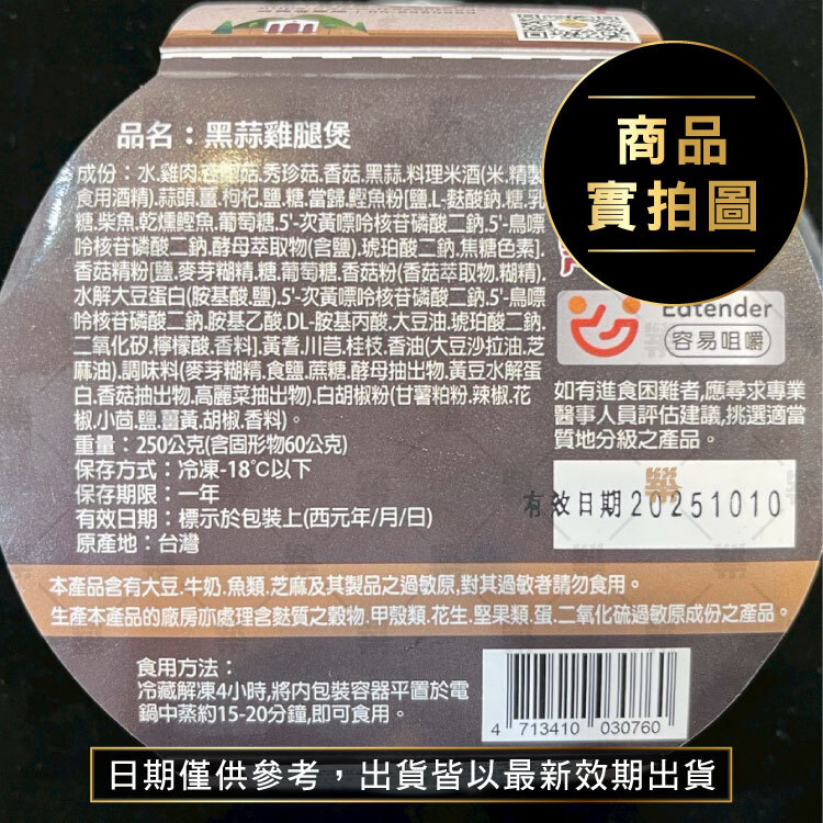 食用方式:冷藏解凍4小時,將內包裝容器平置於電鍋中蒸約15-20分鐘,即可食用。