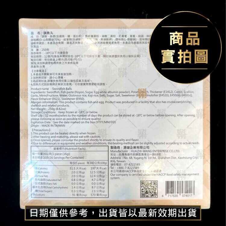 ■ 本產品含魚類、雞蛋及其製品,不適合對其過敏體質者食用。本產品生產廠房其設備或管線有處理甲殼類、頭足類、螺貝類及其製品。