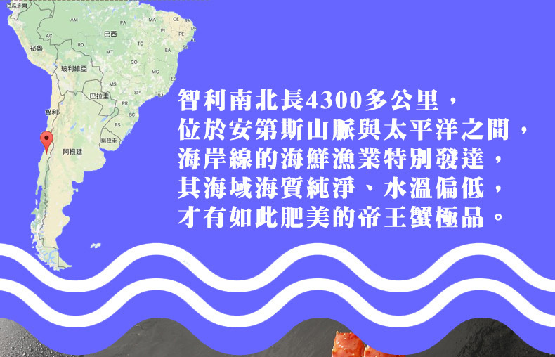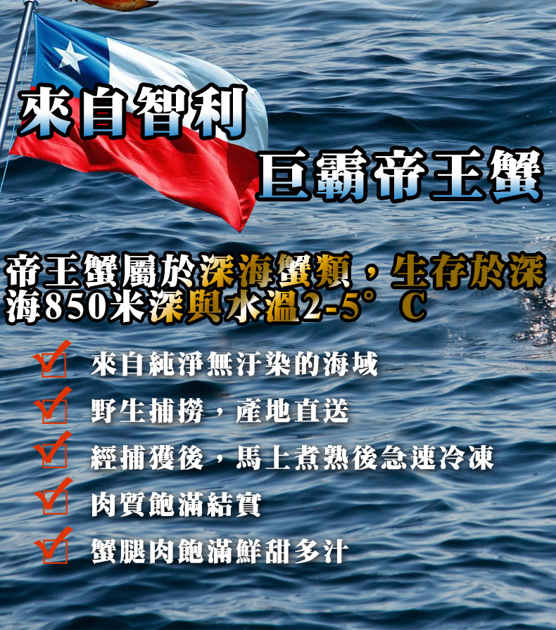 ■ 選自智利南極冰冷海域,體型碩大高品質帝王蟹