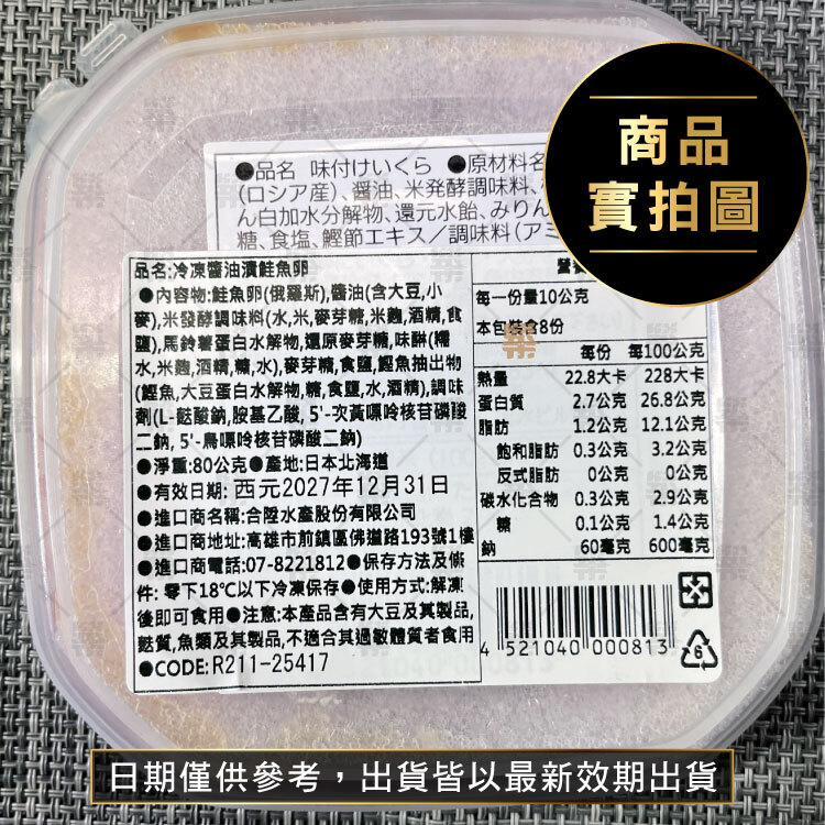 品名:冷凍醬油漬鮭魚卵