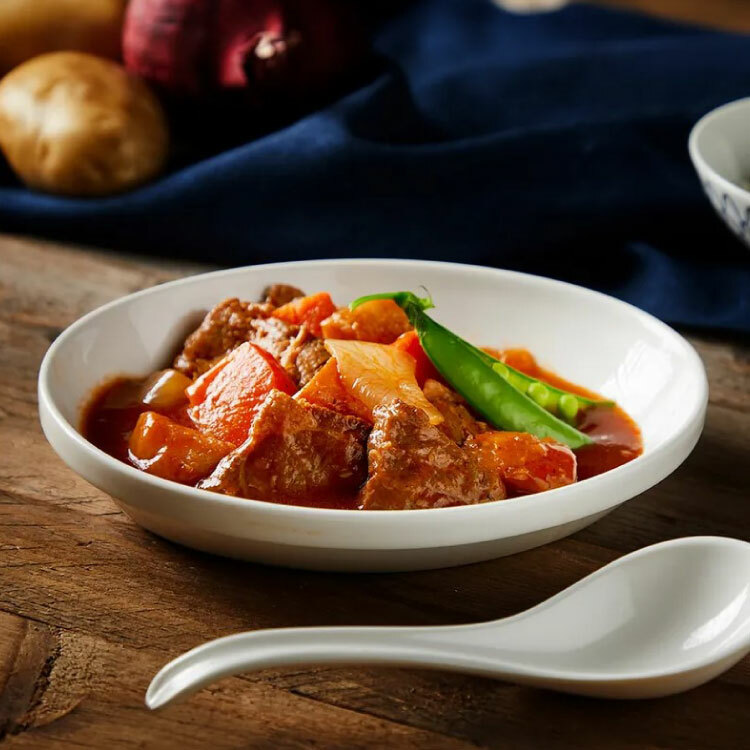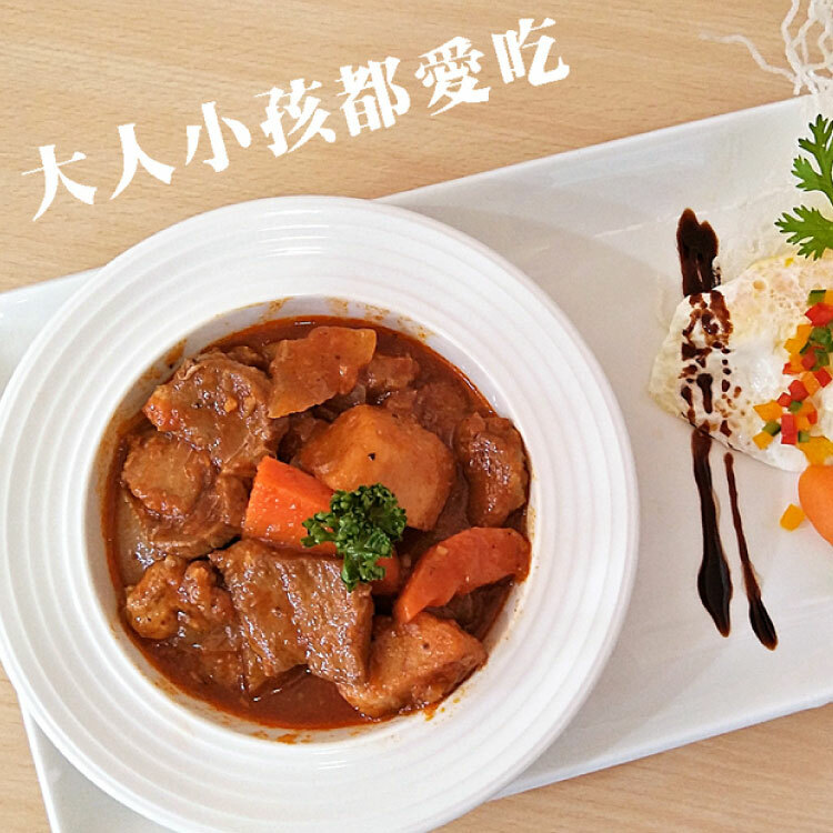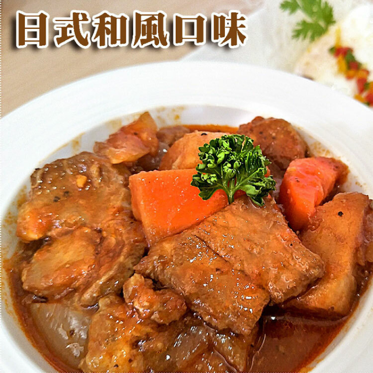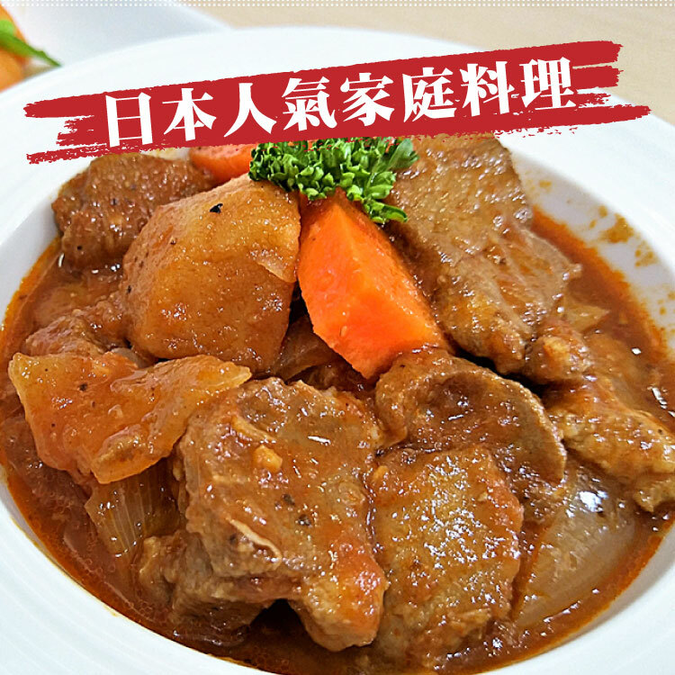 成份:水、豬肉、馬鈴薯、番茄醬、紅蘿蔔洋蔥、番茄糊、醬油、蒜、糖、大豆沙拉油、樹薯澱粉、烏酢、米酒、匈牙利紅椒、鹽、黑胡椒、義大利香料、百里香、月桂葉、花椒粉、粘稠劑(乙醯化己二酸二澱粉)