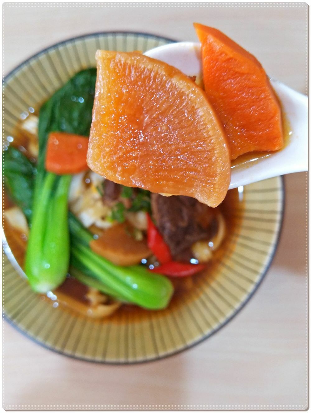 ⭕牛油提煉的辣油煸炒乾辣椒、辣椒油所製成的川味牛肉湯