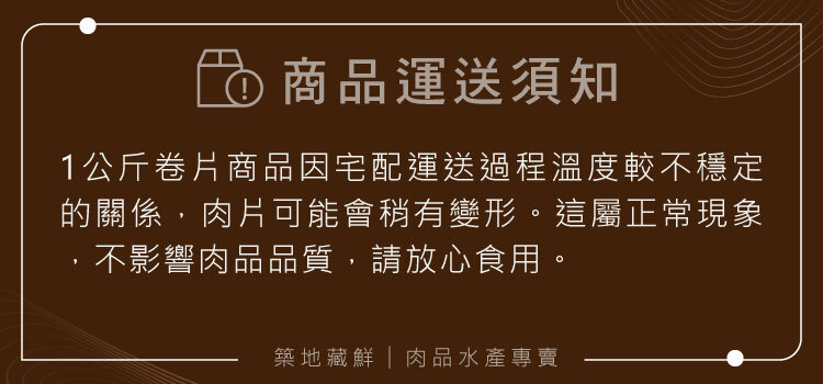 注意事項:築地藏鮮採原肉切割,內容單品重量不會均等重,依產品總重量為基準,開封後請儘速食用完畢。