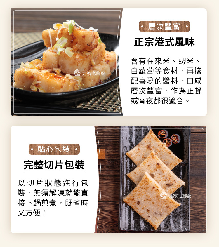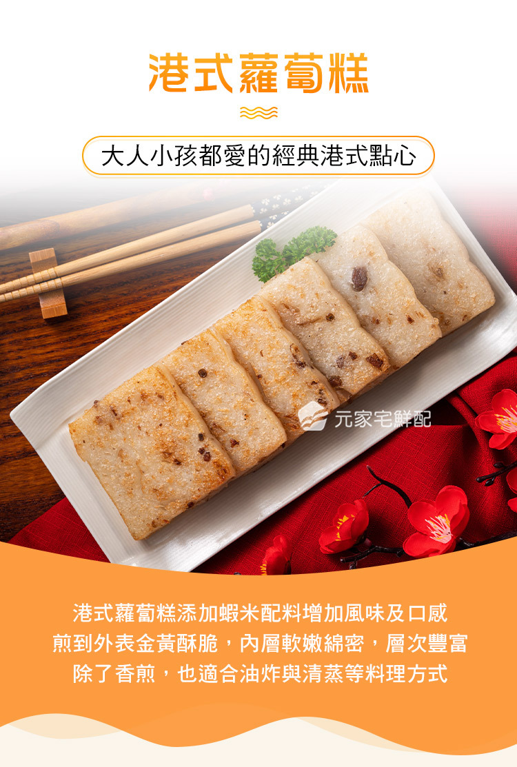 ●港式風味蘿蔔糕添加蝦米增添風味及口感